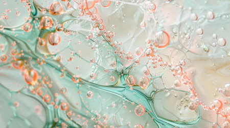 This image captures a stunning close-up of bubbles and liquid layers in a glass jar, showcasing the beauty of chemical reactions and fluid dynamics.