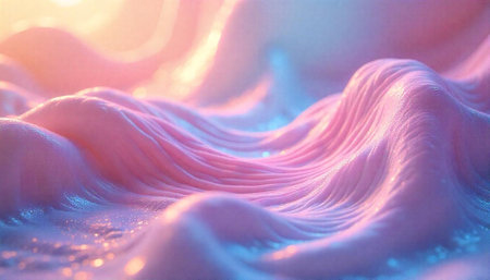 Abstract waves of soft pink and blue light
