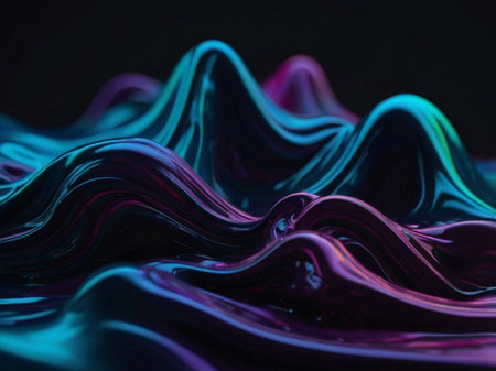 Rippling showing abstract macro shot of rippling liquid surface reflecting neon blue pink and green lights in a dark environment. resolution