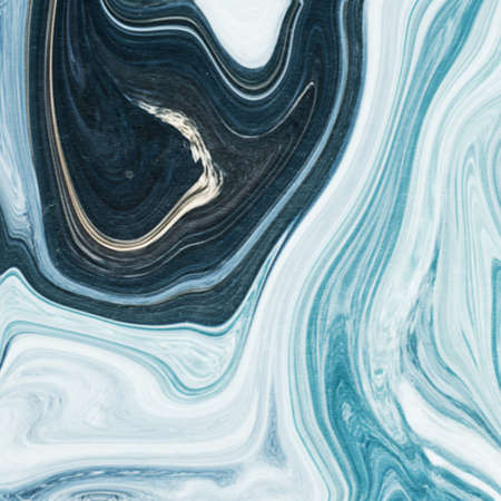 Abstract fluid acrylic painting. Marbled blue abstract background. Liquid marble pattern. Hand painted background with mixed liquid blue and green paints. Modern art.