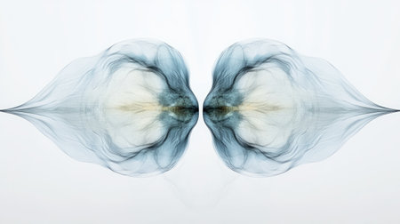 This abstract image features a captivating smoke reflection design in soft blue and light hues, embodying fluidity and motion with its graceful shapes.