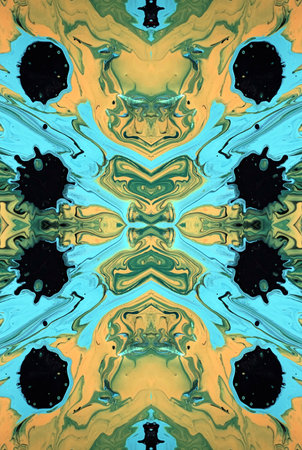 art photography of abstract marbleized effect background. Turquoise, purple, gold, yellow, blue and black creative colors. Beautiful paint
