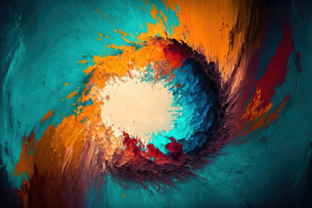This captivating abstract image showcases colorful swirls and a unique circular pattern that creates depth and texture. Perfect for artistic design projects.