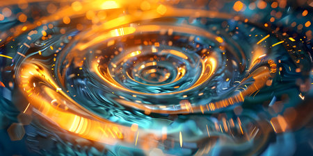 Swirling ocean wave with golden reflections creating a mesmerizing water pattern concept