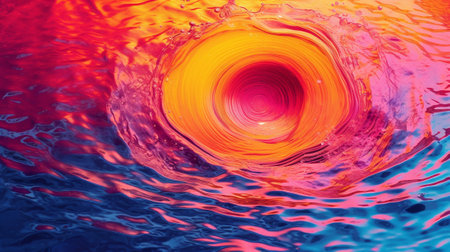 Mesmerizing vortex forming concentric circles in a dark pool reflecting a vibrant orange sunset