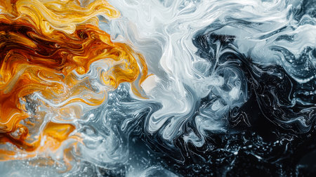 Abstract fluid art in monochrome tones - a dynamic combination of black and white paint to create unique patterns and textures.