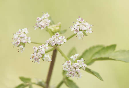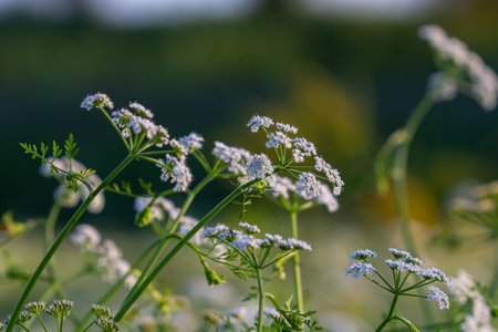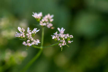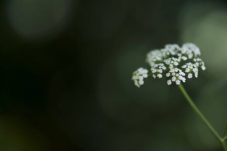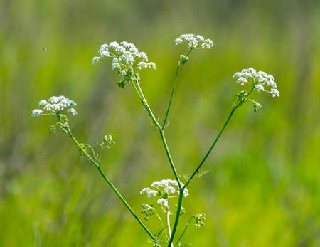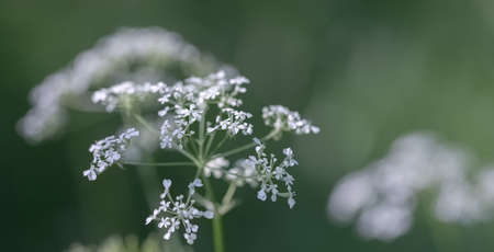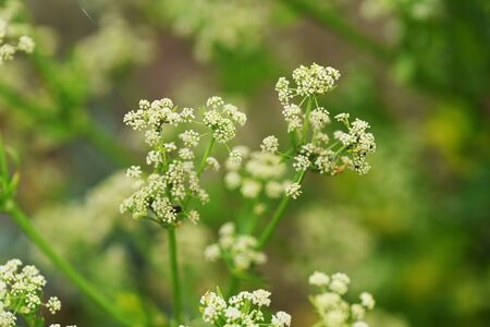 Small flowers of poisonous hemlock on a green natural background. High quality photo