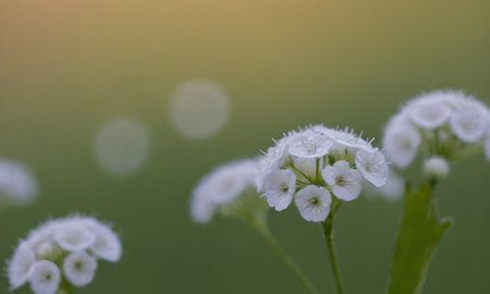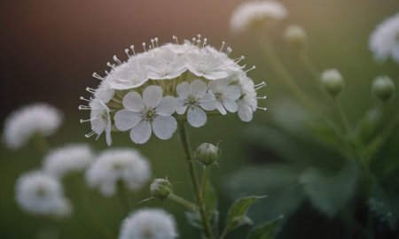 A beautiful display of tiny white flowers swaying gently in the breeze under the sun's glow.