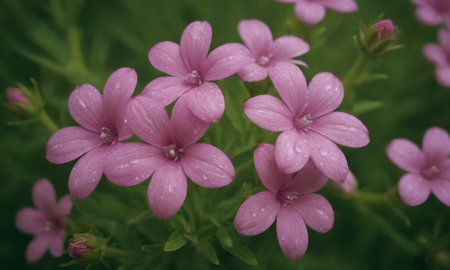 This captivating image features delicate pink flowers flourishing in lush greenery, capturing the essence of nature