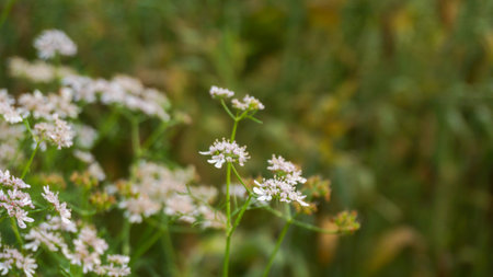 Aegopodium podagraria, bishop's weed plant in bloom. Medical herb.
