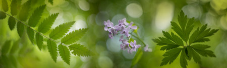 macro view of green plants blooming with delicate flowers, created with generative ai