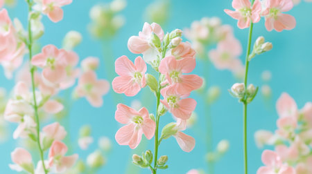 Delicate pink flowers on a turquoise background, floral background for design, spring concept