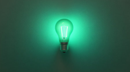 A vibrant green light bulb creates a unique ambiance against a textured wall. Perfect for conveying ideas of innovation, creativity, and modern design.