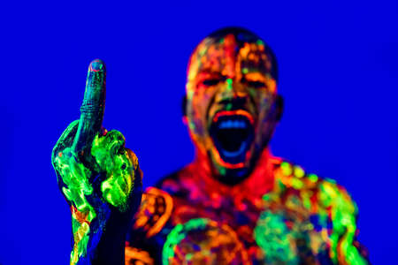 afro american man with UV body art posing in studio