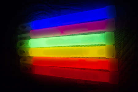 Colorful fluorescent light neon glow stick on black background.
