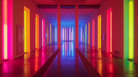 A stunning close-up of colorful neon tubes radiating vibrant light in a modern setting. The bright colors create an energetic atmosphere perfect for creative spaces.