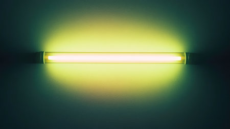 A glowing neon green light tube mounted on a dark wall, creating an elegant and vibrant atmosphere. Perfect for modern design projects and decor themes.