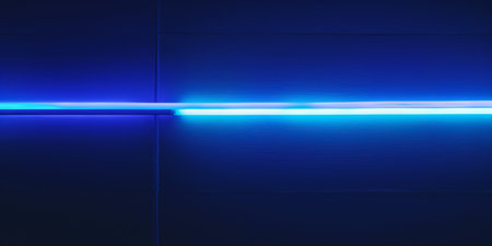 Blue Neon Light Strip on Dark Wall Futuristic Minimalist Neon Glow Scenery.