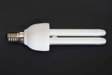 energy saving fluorescent lightbulb on green background, energy saving concept