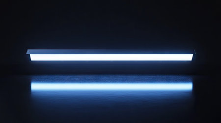 Bright neon light bar casts a striking glow against a dark background, creating a unique reflection. Perfect for inspiration in modern decor and lighting ideas.