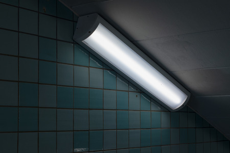 Closeup of a fluorescent light in a subway tunnel. Sweden