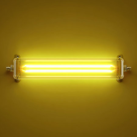 A bright yellow neon light tube illuminates a vibrant yellow background, offering a modern aesthetic perfect for interior design and creative projects. Ideal for showcasing style and energy.