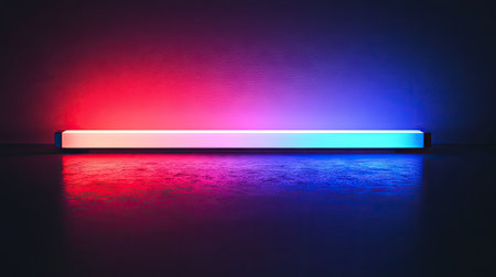 A striking composition featuring a sleek neon bar light in vibrant colors set against a dark background, perfect for modern decor and creative photography projects.
