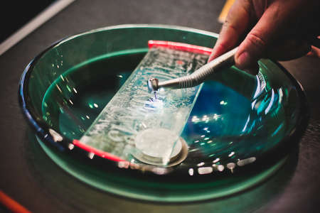 Testing metal Dental equipment tools with blurry background