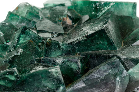 Natural mineral fluorite crystals. Mineral fluorite translucent stone. close up macro