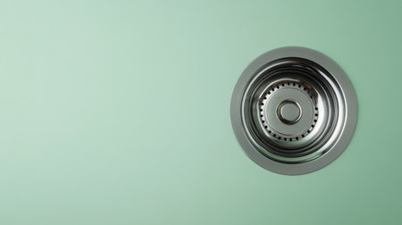 A sleek stainless steel sink drain set against a soft green background showcases modern kitchen aesthetics, perfect for interior design inspiration.