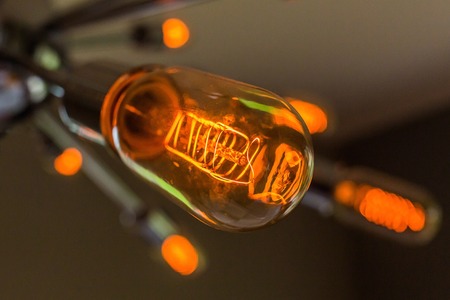 Beautiful vintage light bulb. Retro luxury light bulb hanging decor glowing