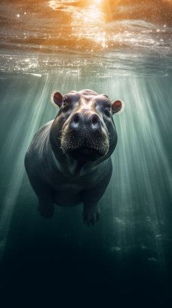 A serene moment capturing a hippo submerged in tranquil waters showcasing its natural habitat.