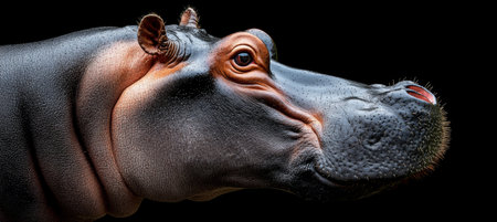 Close-Up Profile of a Hippopotamus with its Mouth Slightly Open Against a Black Backdrop