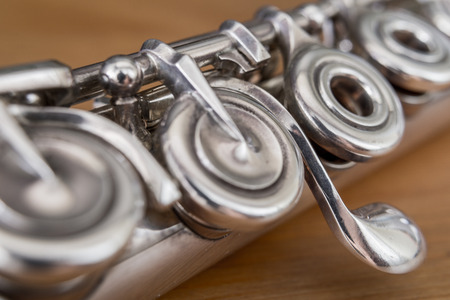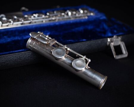 Musical wind instrument piccolo flute and brass flute. High quality photo