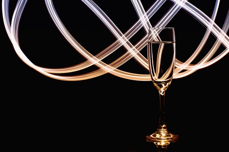 Glasses with champagne against fireworks and holiday lights - Celebrating the New Year