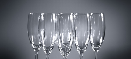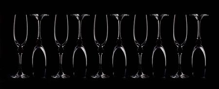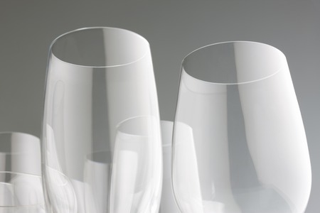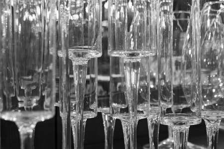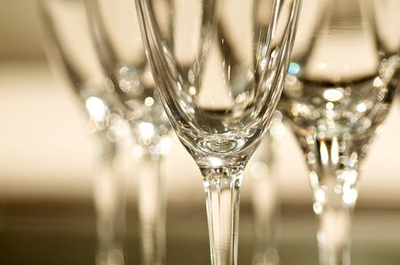 Row of glasses macro shot. Empty glasses on a banquet table close up