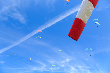 Windsock as a gauge for winds, wind vane on the aerodrome airfield on an air show