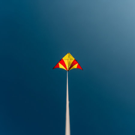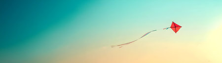 A vibrant kite majestically soaring high in the boundless clear sky capturing the joy freedom and of harnessing the wind and exploring the great outdoors