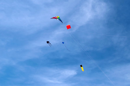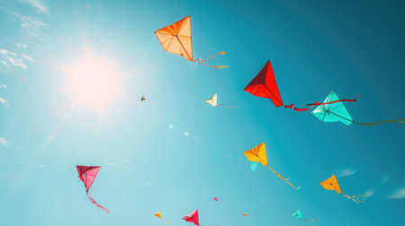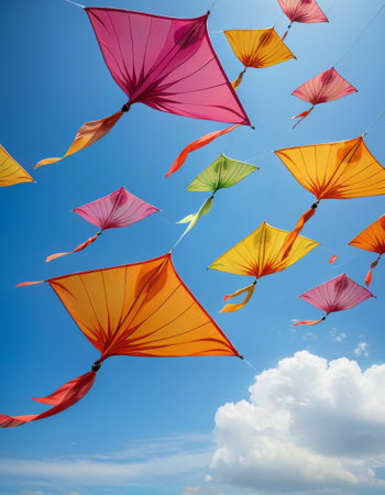 Colorful Kites Flying High in Blue Sky