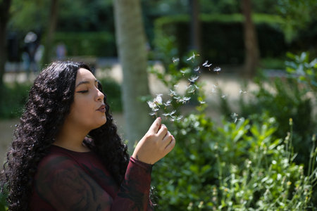 The close up picture of the person is playing the kite under the bright light from the sun of the clear blue sky that can be conveying the feeling of the happiness, freedom, playful and joyful. AIG43.