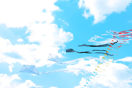 Kites with blue sky and white clouds