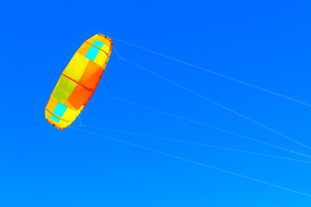 Paraglider in the blue sky. Kitesurfing