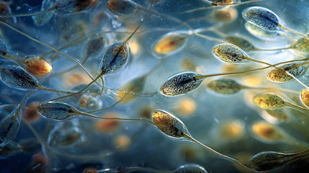 Infusoria aquatic. Tiny ciliates and flagellates create a vibrant ecosystem, embodying the intricate biodiversity within water environments, revealing the hidden world of minute, dynamic life forms