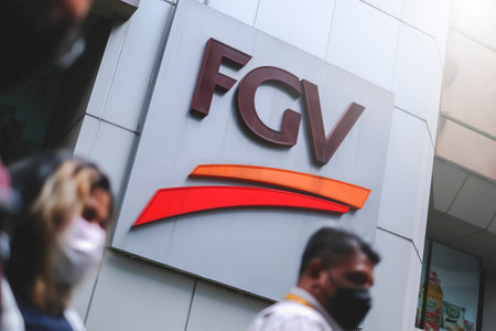 KUALA LUMPUR, MALAYSIA - AUGUST 03, 2022: FELDA Global Ventures Holdings Berhad (FGV) logo at FGV building. FGV is a Malaysian-based global agricultural and agri-commodities company.