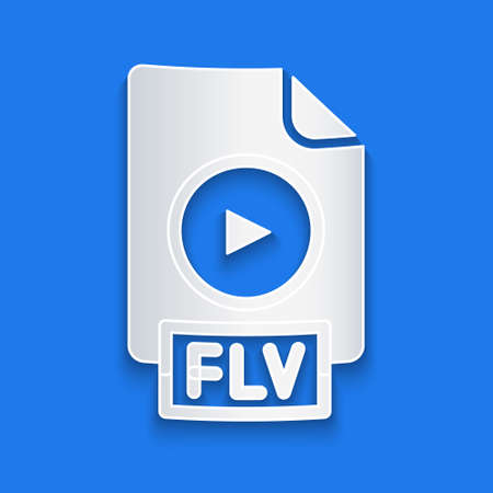 Paper cut FLV file document video file format. Download flv button icon isolated on blue background. FLV file symbol. Paper art style. Vector