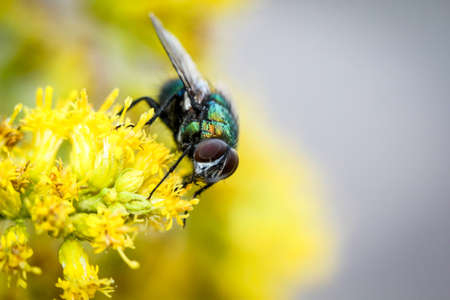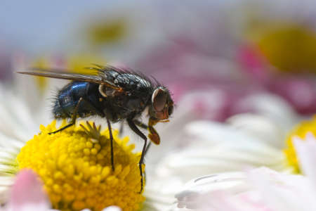 Specimen of common fly in the foreground