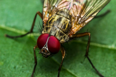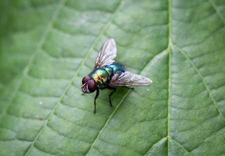 Insect fly red eyes on leaf macro shot