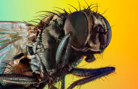 An extreme macro of a housefly. Stack of photos.
