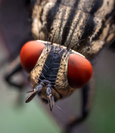 Macrophotography with the head of a Common flesh fly (Sarcophaga carnaria).