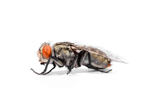 close-up of House fly isolated on white background